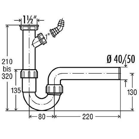 Стандартный пластиковый сифон для кухонных моек и умывальников