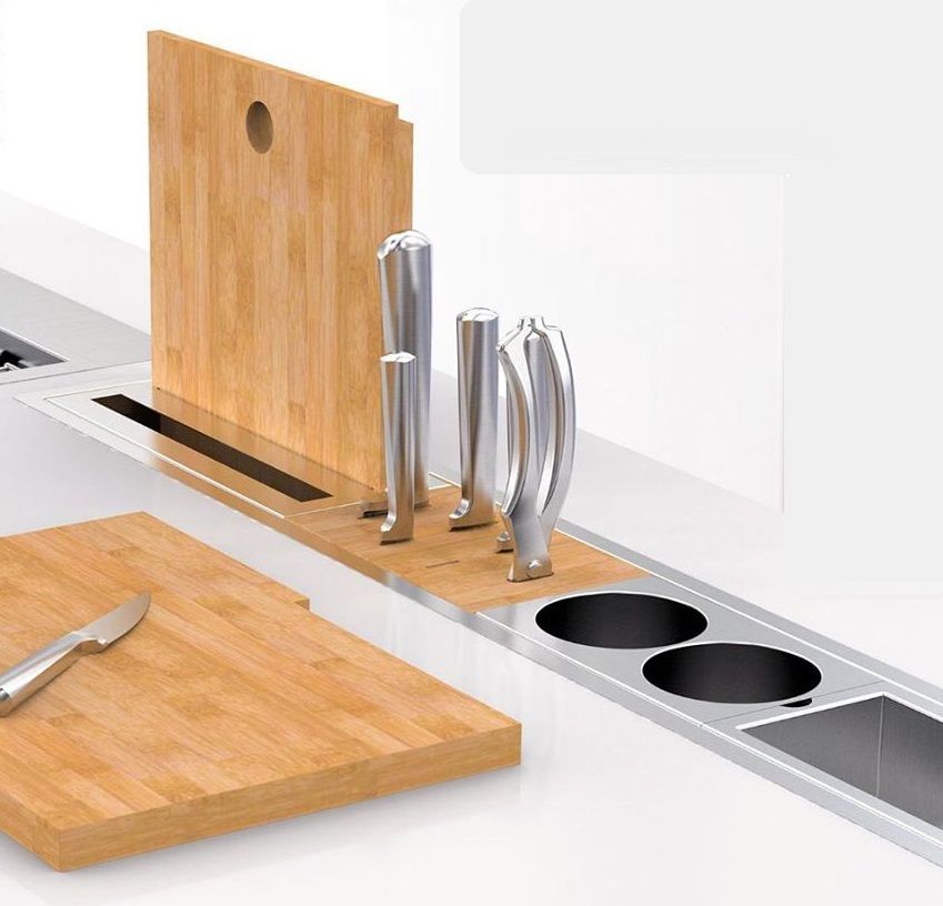 Системы изготовлены из высококачественной брашированной нержавеющей стали 304 категории, толщиной 1,5мм.Блок системы комплектуется набором сливной фурнитуры и крепежной арматуры. В блок можно установить несколько модулей из 10 вариантов разного функционала, которые можно менять местами. Модули выполнены из микробрашированной нержавеющей стали и из высококачественной древесины бамбука.