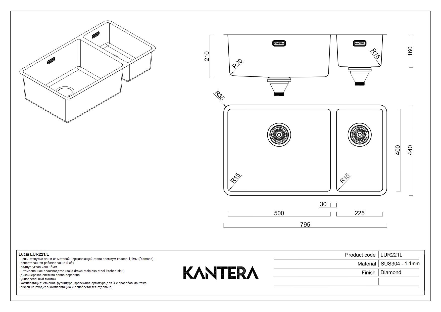 База80 смФормаПолторы чашиМатериалНержавеющая стальЦветНержавеющая стальПокрытие нержавеющей сталиМатовая стальТолщина материала1.1 ммТип монтажаВрезной, подстольный, вровень со столешницейСтрана производительАвстралия