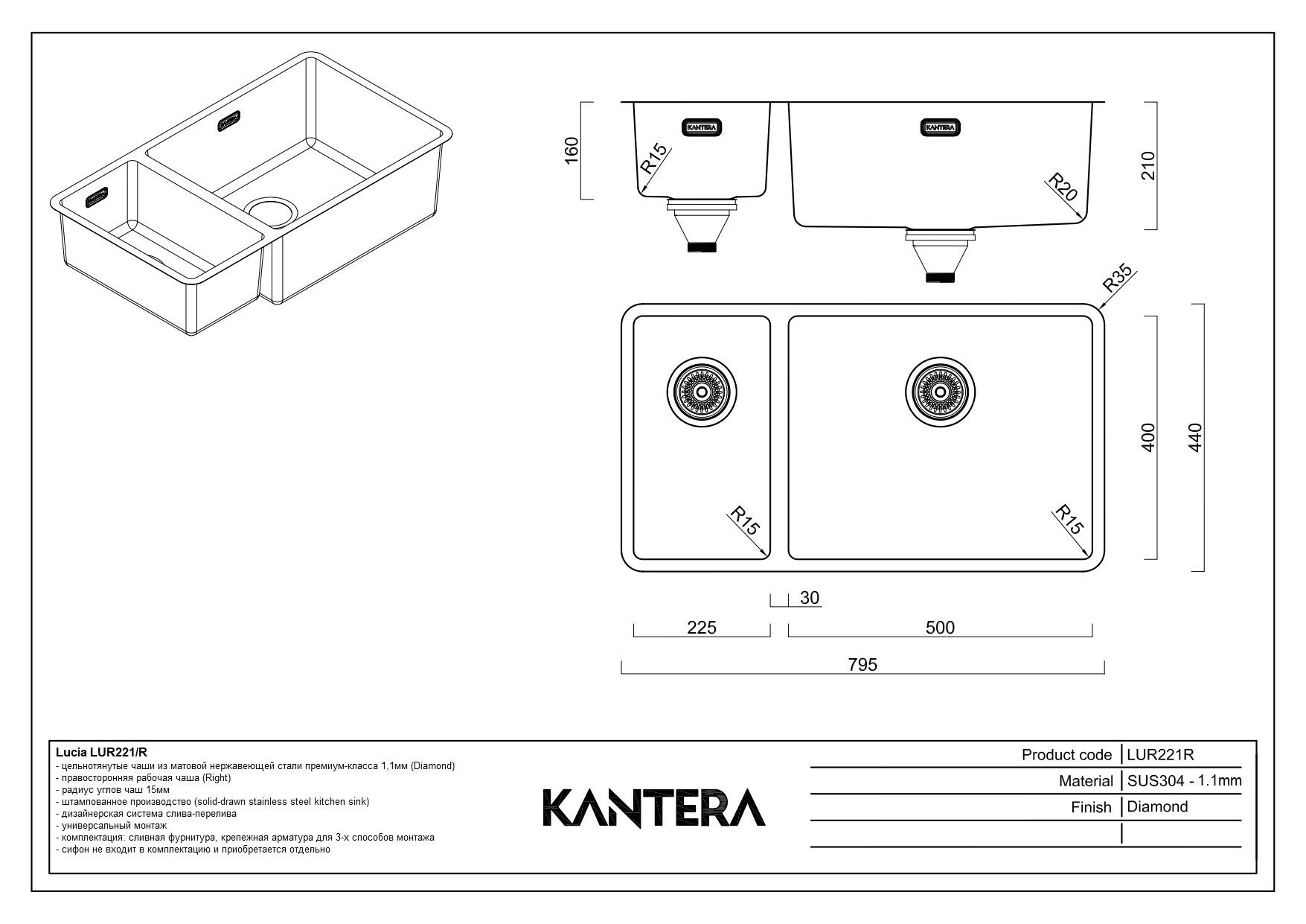 База80 смФормаПолторы чашиМатериалНержавеющая стальЦветНержавеющая стальПокрытие нержавеющей сталиМатовая стальТолщина материала1.1 ммТип монтажаВрезной, подстольный, вровень со столешницейСтрана производительАвстралия