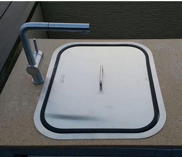 Мойка имеет комфортный размер и оптимальную глубину чаши. Крышка защищает мойку от попадания воды и посторонних предметов, а в закрытом положении создает впечатление единой поверхности Вашей столешницы.