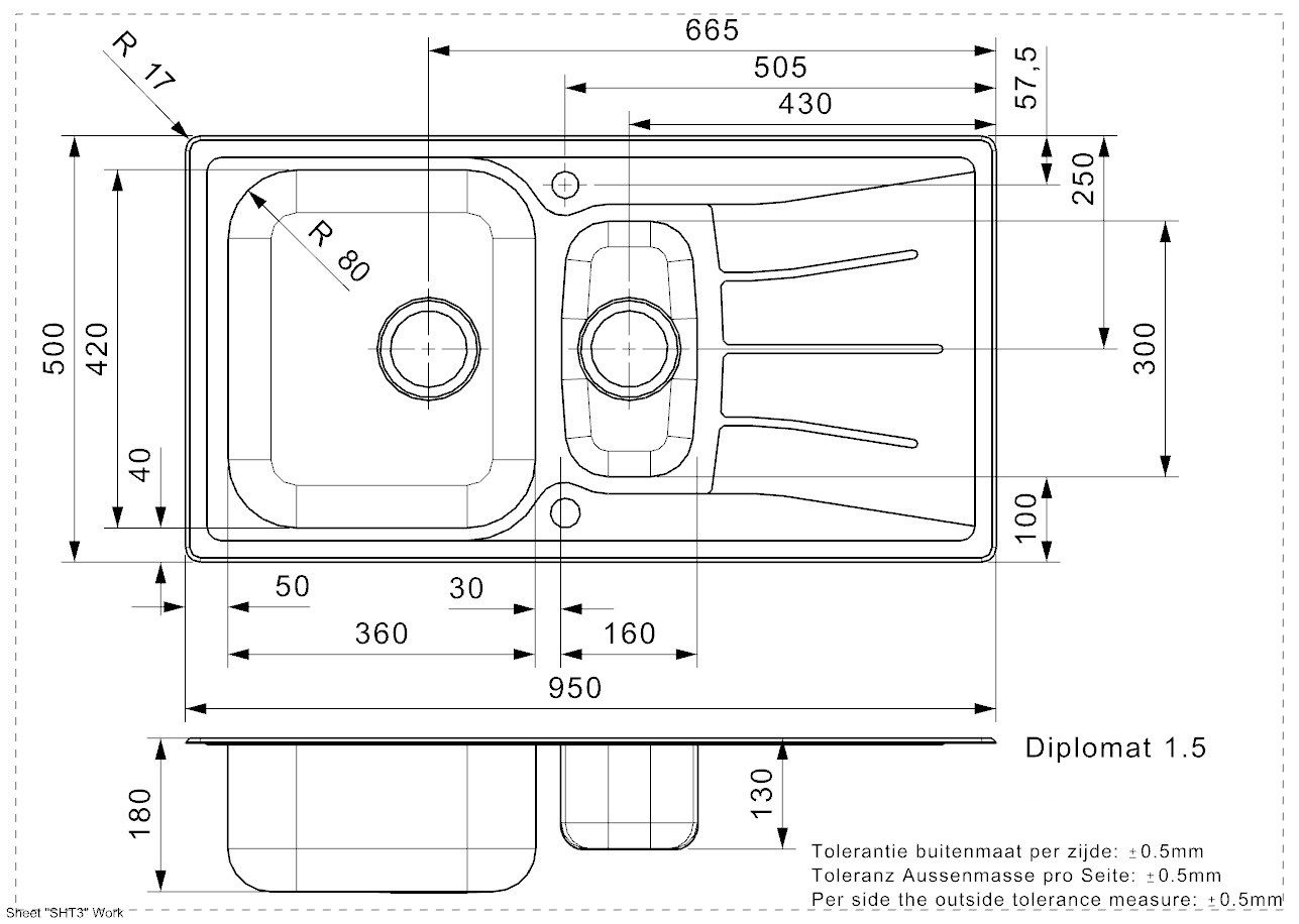 950 x 500 мм