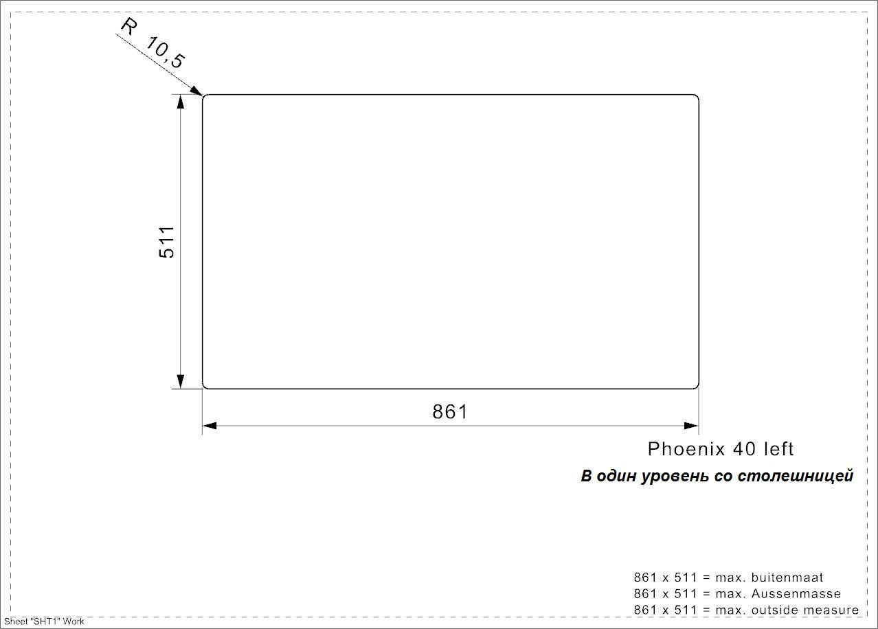 Врезной, вровень со столешницей