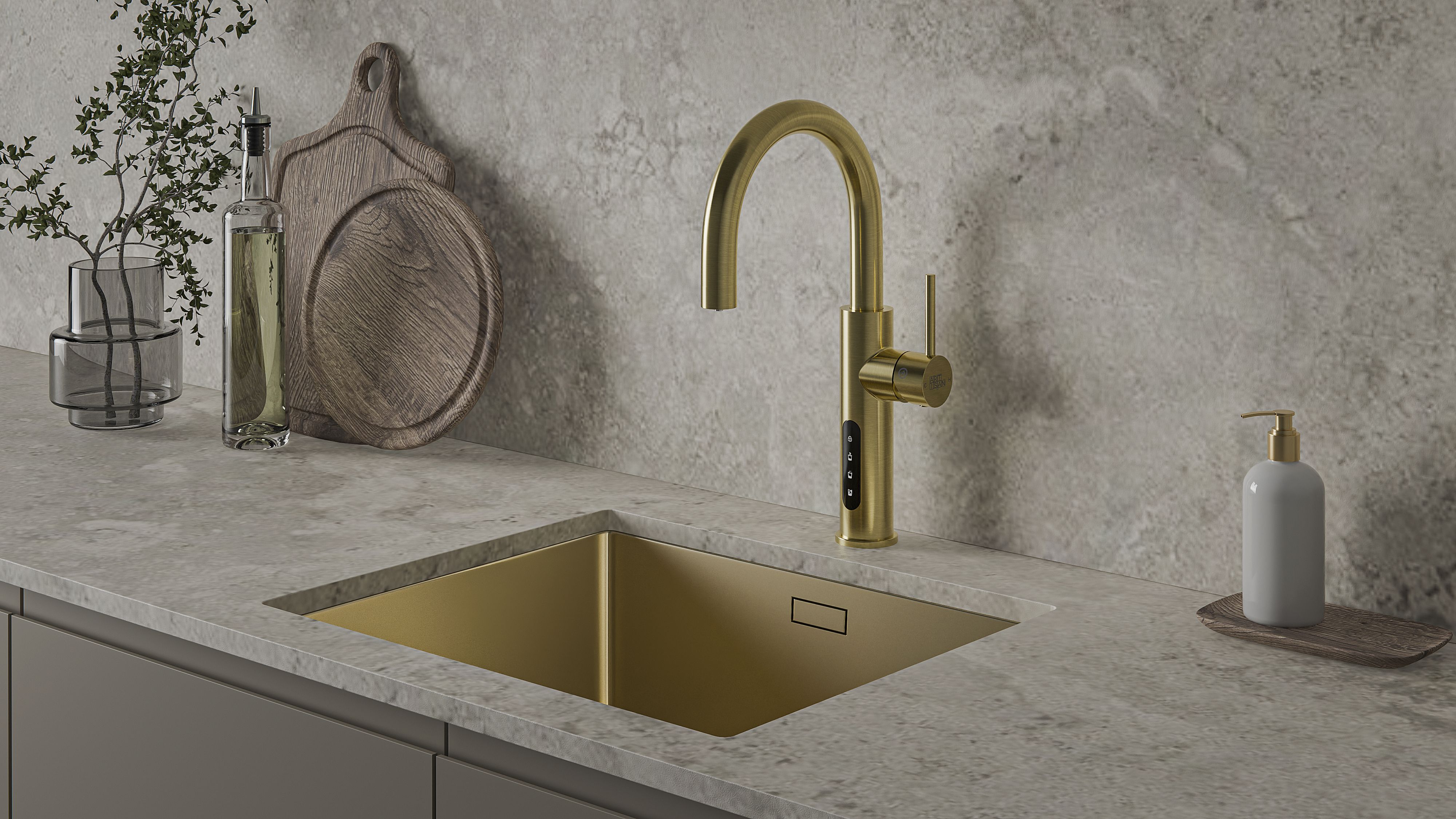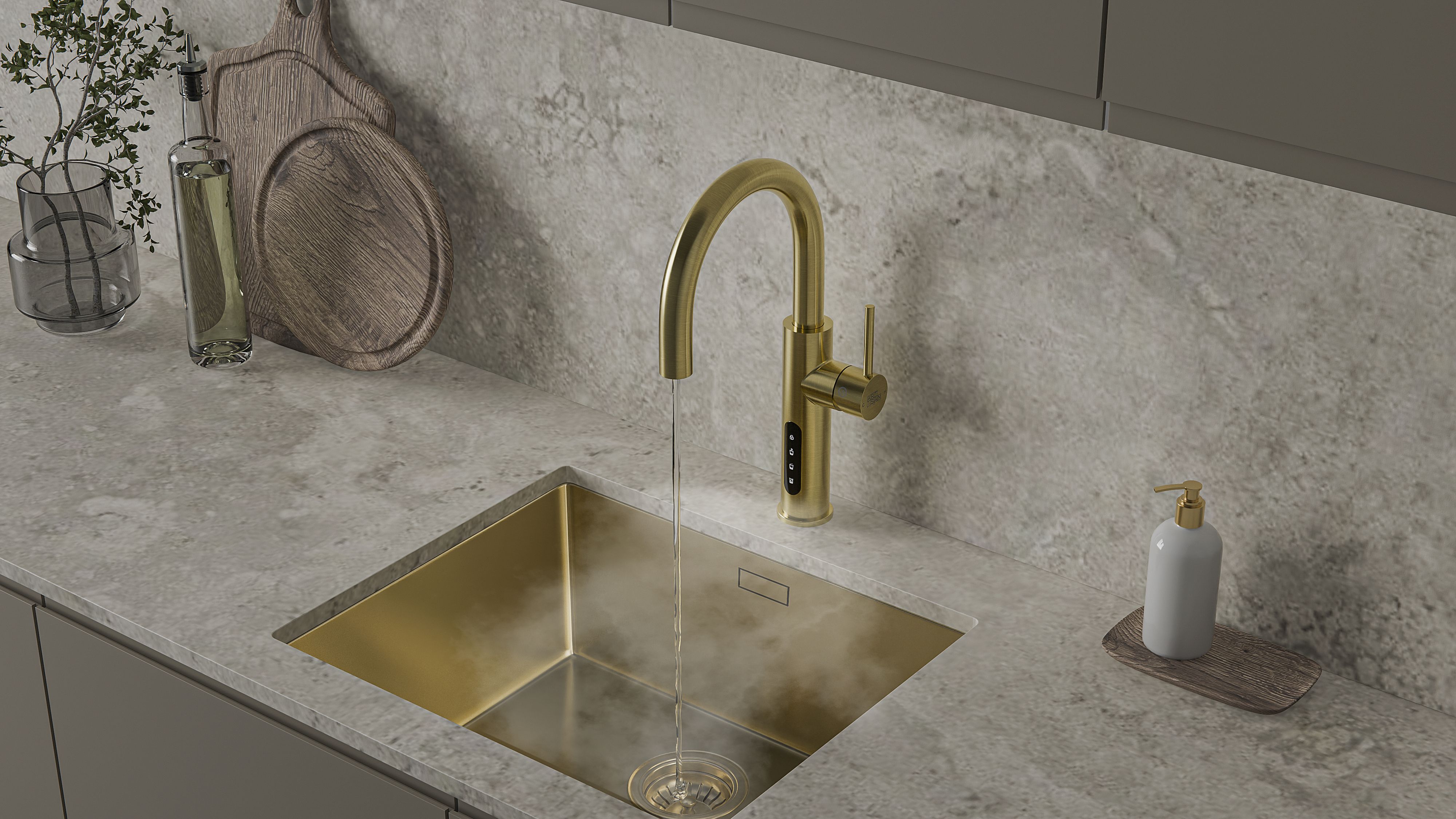 Система мгновенного кипячения воды с газацией и охлаждением 5в1 AQUAHOT ASPEN LG (светлое золото)
