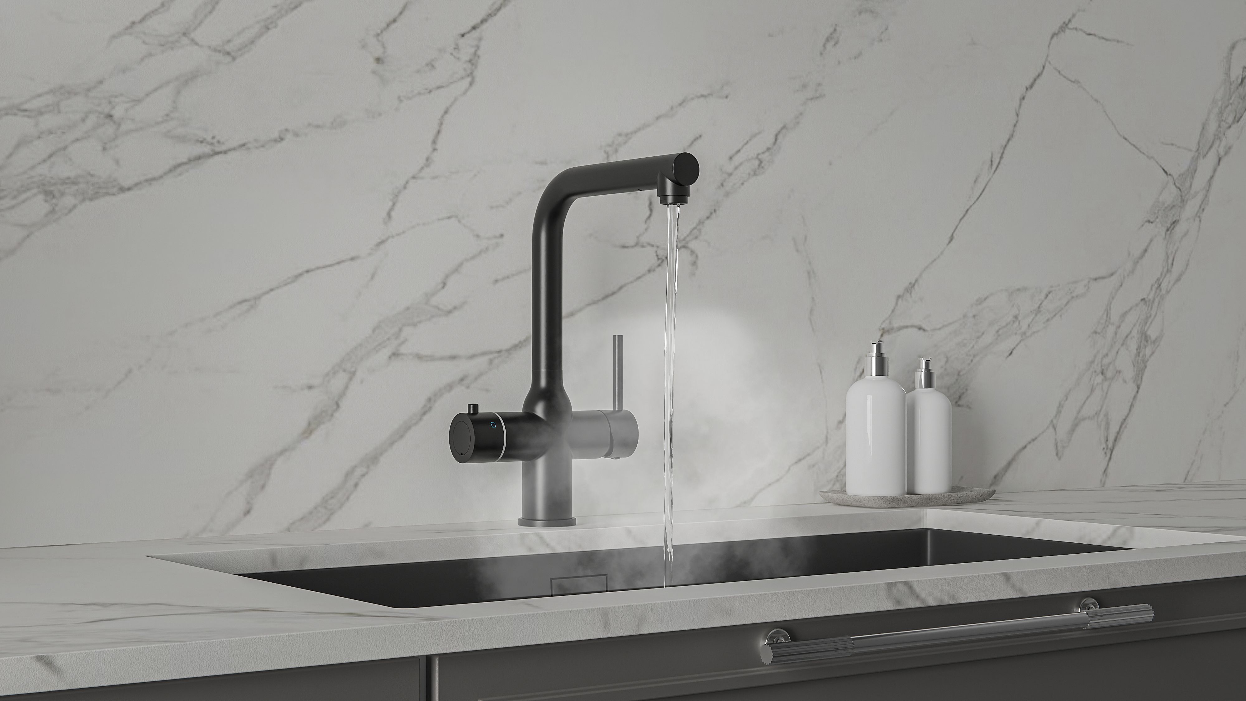 Тип смесителя4 в 1 (фильтрованная вода + кипяток + холодная вода + горячая вода)Материал смесителяВысококачественная латуньЦветчерный матовыйНапряжение питания220-240 ВПлавная регулировка температуры водыот 45 до 98 СГарантия2 года