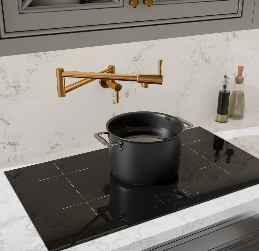 Дословно Pot Filler переводится как «наполнитель кастрюль» и представляет собой кран над плитой, который позволяет наполнить кастрюли, чайник и другую посуду, не отходя от варочной поверхности. Пришедший к нам из Европы, там он давно уже используется хозяйками, как ценный кухонный «помощник», наряду с посудомоечными машинами и измельчителями бытовых отходов. Такой смеситель для кастрюль полюбится всем, а особенно обладателям стеклокерамических и индукционных плит — его использование избавляет от необходимости протирать мокрую посуду, ведь дно емкостей всегда остается чистым и сухим.